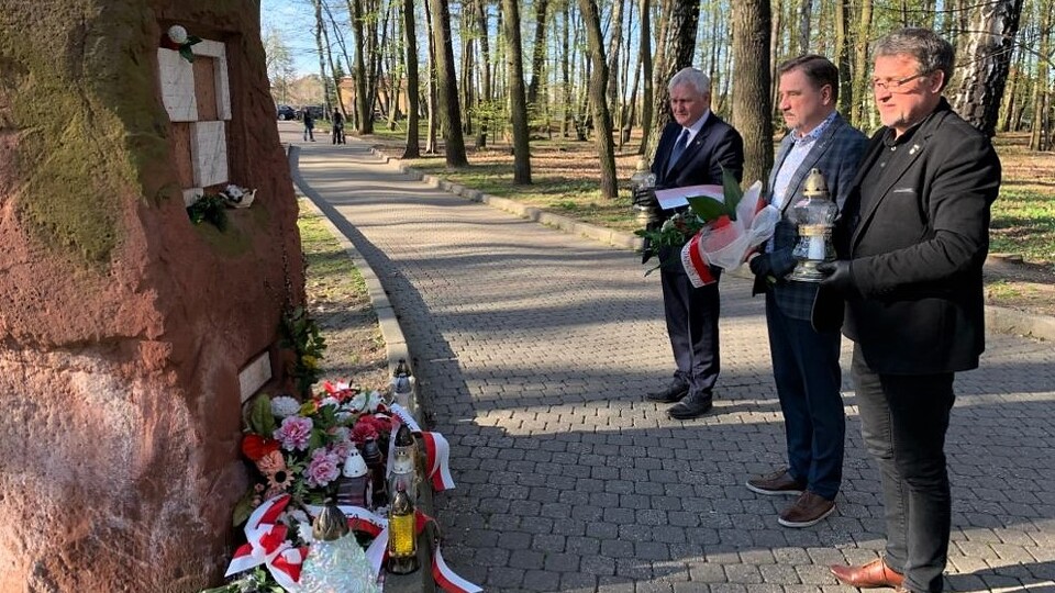 Szef „Solidarności” Piotr Duda wraz z przedstawicielami Biura Terenowego Śląsko-Dąbrowskiej „Solidarności” w Tarnowskich Górach i radnym sejmiku wojewódzkiego Józefem Kubicą, złożył kwiaty pod obeliskiem poświęconym ofiarom katastrofy smoleńskiej z 10 kwietnia 2010 r.