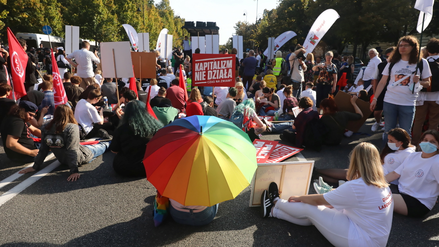 Wcześniej w stolicy odbył się protest pracowników ochrony zdrowia. Protestujący z całej Polski zebrali się w rejonie pl. Krasińskich i przeszli pod KPRM. Mieli ze sobą transparenty z takimi hasłami, jak: "Krótko żyjemy, bo ciężko pracujemy", "Zapraszamy na oddziały, bo niedługo zamykamy", "Pandemia braków pielęgniarek i położnych trwa od lat", "Umieramy o 20 lat wcześniej, niż inne Polki", "Żądamy godnych zarobków", "Nie ma medycyny bez diagnostyki".