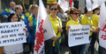 2 kwietnia w samo południe pracownicy oddziałów ZUS w całym kraju wyszli przed budynki, w których pracują. Okazali w ten sposób solidarność ze związkowcami, którzy od wczoraj okupują siedzibę centrali ZUS w Warszawie. Protestujący domagają się od pracodawcy realnych podwyżek wynagrodzeń i przestrzegania zasad dialogu społecznego.
