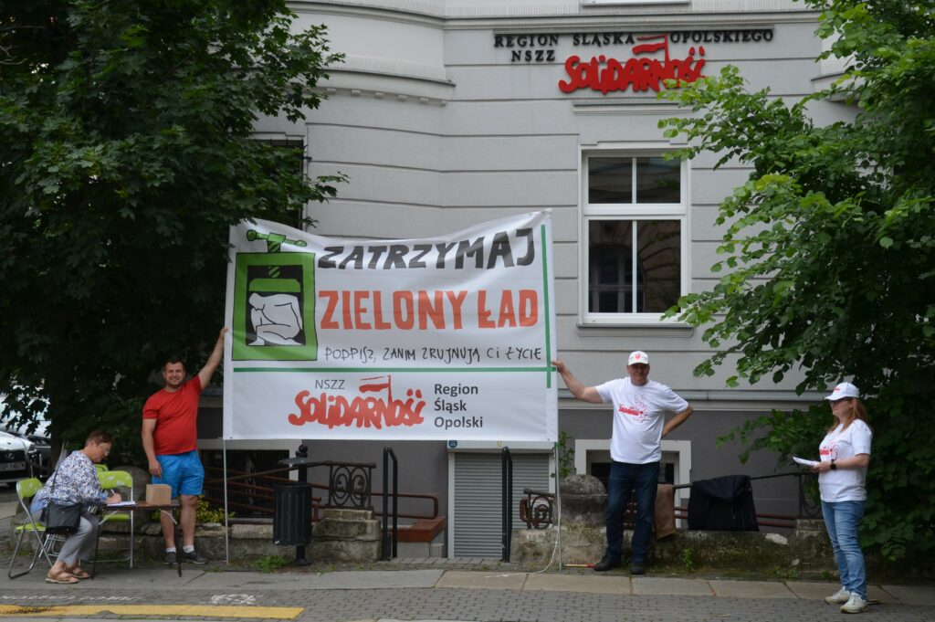 W Kielcach, we wtorek, 28 maja br., w godz. 10.00 - 13.00, na głównej ulicy spacerowej miasta - ul. Henryka Sienkiewicza, na mostku nad Silnicą, Świętokrzyska "Solidarność" zbierała podpisy popierające inicjatywę referendalną dotyczącą Zielonego Ładu.