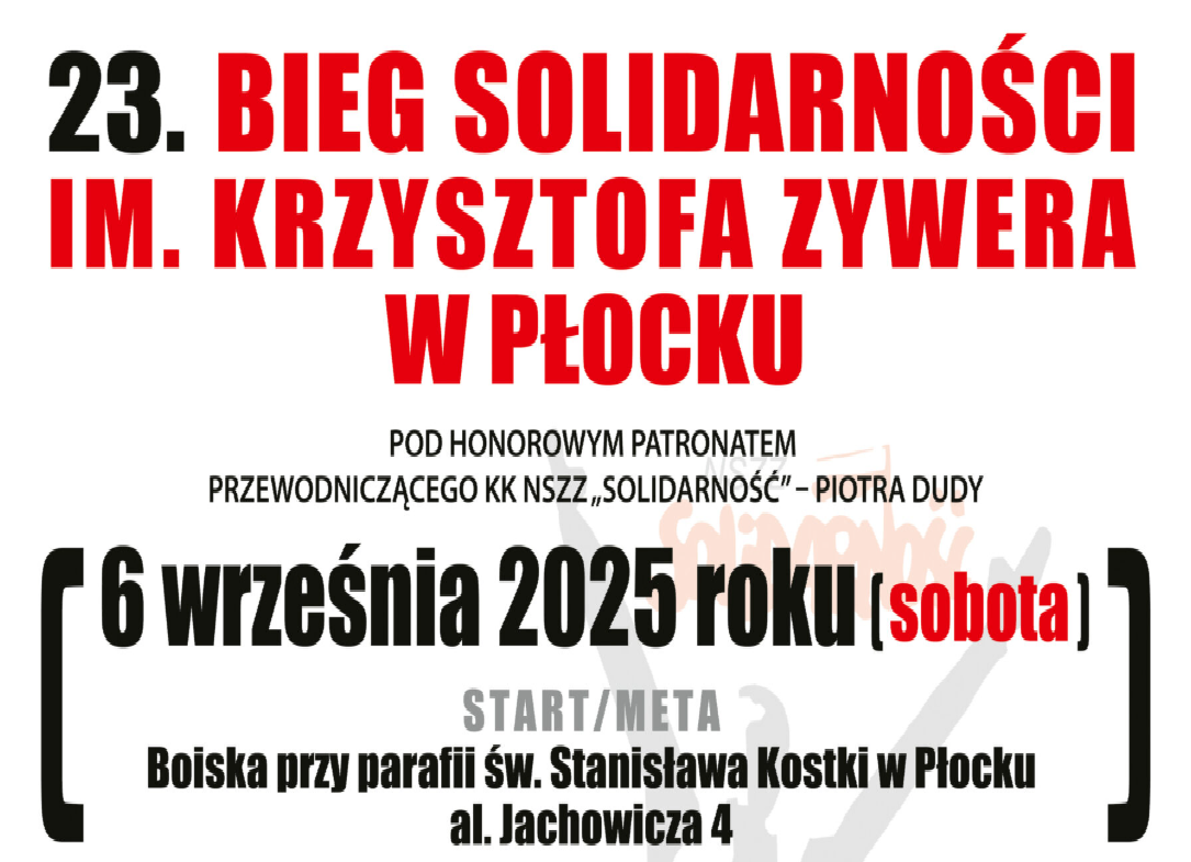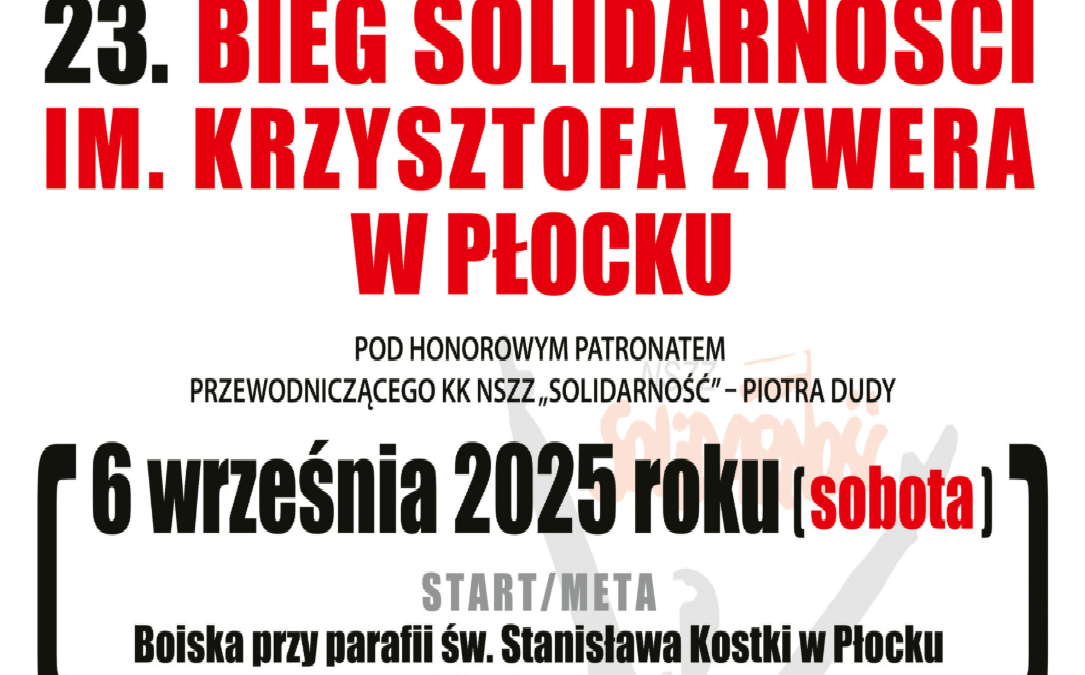 - Już po raz 23. w Płocku odbędzie się Bieg Solidarności im. Krzysztofa Zywera.