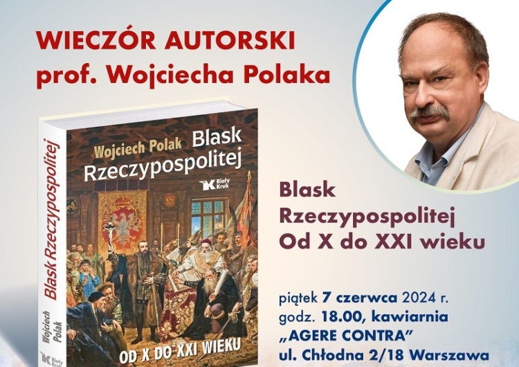 Wydawnictwo Biały Kruk i kawiarnia z wartościami Agere Contra zapraszają na spotkanie autorskie z prof. Wojciechem Polakiem, które odbędzie się 7 czerwca 2024 r. (piątek) o godz. 18:00 w kawiarni Agere Contra na ul. Chłodnej 2/18 w Warszawie.