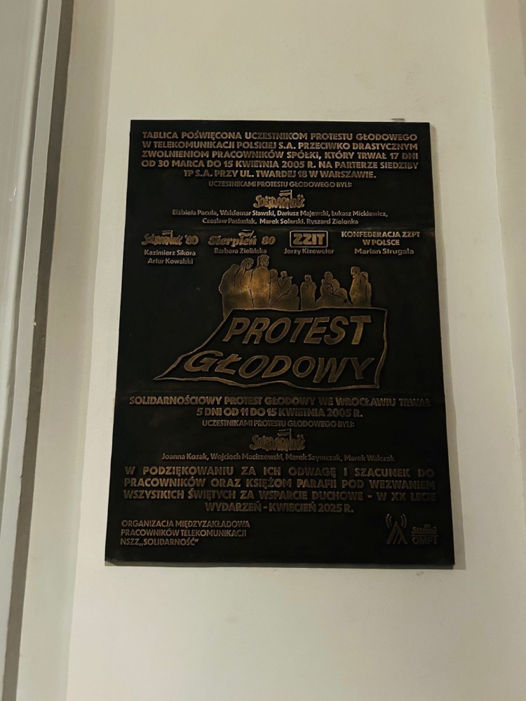 W Warszawie odsłonięto pamiątkową tablicę w związku z 20. rocznicą protestu głodowego pracowników telekomunikacji