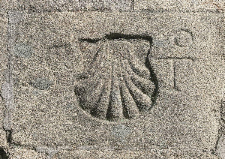 Znak szlaku św. Jakuba na budynku w Santiago de Compostela / wikimedia commons/CC BY-SA 4.0/Lmbuga - Own work
