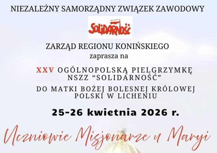 - Region Koniński NSZZ "Solidarność" zaprasza członków Związku oraz wszystkich zainteresowanych do udziału w pielgrzymce do Lichenia.