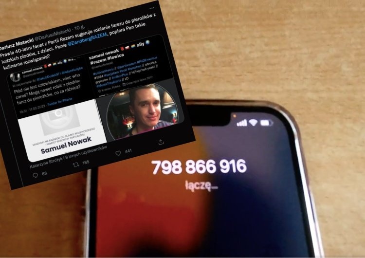 Według Mateckiego lewicowy działacz sugeruje tam, jakoby z płodów można robić „farsz do pierożków”, gdyż „płód nie jest człowiekiem”. Szef Ośrodka Monitorowania Antypolonizmu opublikował nagranie z rozmową, jaką przeprowadził w tej sprawie z Samuelem Nowakiem.