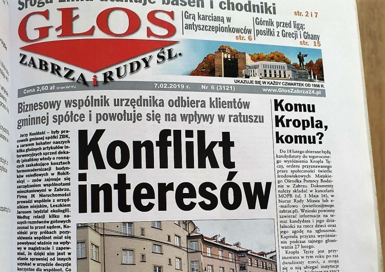 Redaktor Jarasz został oskarżony w trybie karnym z okrytego złą sławą artykułu 212 kodeksu karnego przez dwóch bohaterów jego publikacji śledczych: byłego radnego SLD (a zarazem byłego pracownika gminnej spółki) oraz obecnego urzędnika miejskiego. „Głos Zabrza” ujawnił, iż obydwaj panowie prowadzą konkurencyjną wobec gminy prywatną firmę zarządzania nieruchomościami, która stara się pozyskiwać m.in. wspólnoty mieszkaniowe zarządzane przez spółkę gminną ZBM – TBS. Red. Jarasz dotarł też do świadków, którzy potwierdzili także przed sądem, iż firma obydwu biznesmenów powoływała się na wpływy w Urzędzie Miejskim, przedstawiając się niektórym mieszkańcom jako ta, która może z tego powodu więcej niż konkurencja.
