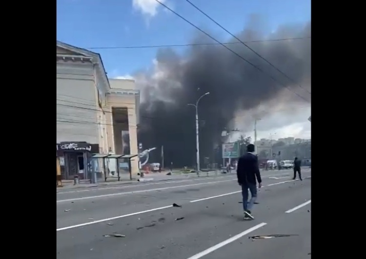 Według ukraińskich mediów rakiety uderzyły w rejonie centrum miasta. W wyniku eksplozji wybuchł pożar. (PAP)